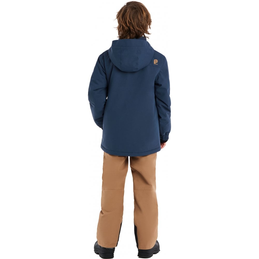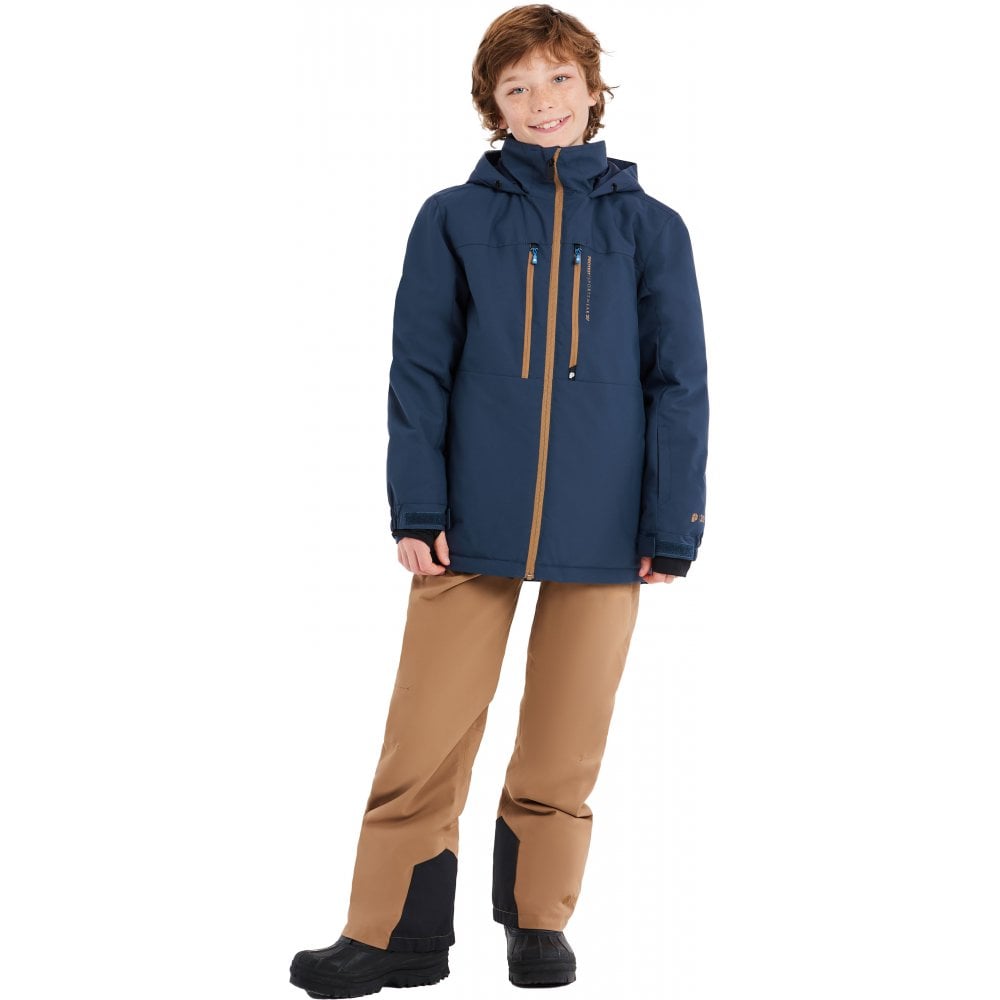 Designed for young shredders who ride hard in any condition, this boys’ snowboard (or ski) jacket offers serious protection with a 20K/20K waterproof and breathability rating. Made from durable 100% polyester 210T and finished with PFC-free Geotech waterproof hydrophilic lamination, it keeps kids dry and comfortable even on the wettest days. The regular fit and length provide plenty of room to move, while critically taped seams, a full reversed zipper, and a built-in waist gaiter help seal out snow and wind.