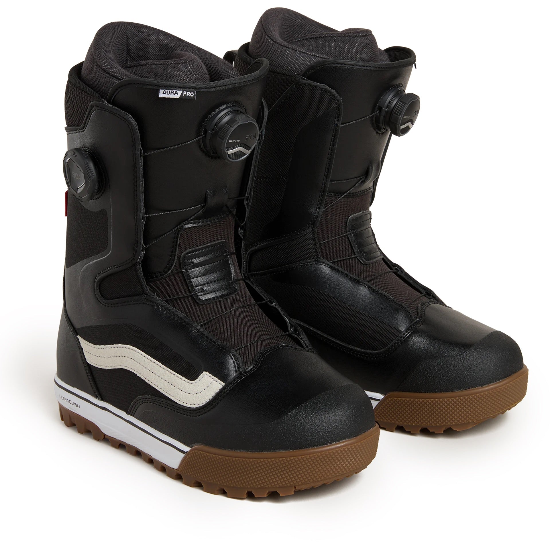 The Vans Aura Pro is a men's snowboard boot that blends comfort, control, and classic Vans style—built for riders who want one boot that can do it all. From park laps to powder days, this boot is ready for anything the mountain throws your way. Equipped with a dual-zone BOA® Fit System and Vans Custom Focus, the Aura Pro lets you dial in your fit with precision—anytime, anywhere. The Custom Slide Guide locks your heel in place for all-day support and zero heel lift. Inside, the V2 UltraCush™ Smartwool® liner keeps your feet warm and dry, while the V2 Waffle Pro outsole delivers next-level grip and board feel. Whether you're charging hard or cruising with friends, the Aura Pro is your go-to boot for all-mountain performance and everyday comfort.
